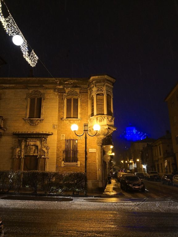 Nel corso della serata l'intesità dei fiocchi è aumentata, come testimoniano le foto allegate a questo pezzo. In centro e soprattutto in collina (come testimonia la bella immagine dei Monte dei Cappuccini) adesso si può parlare di neve e non più solo di nevischio.
