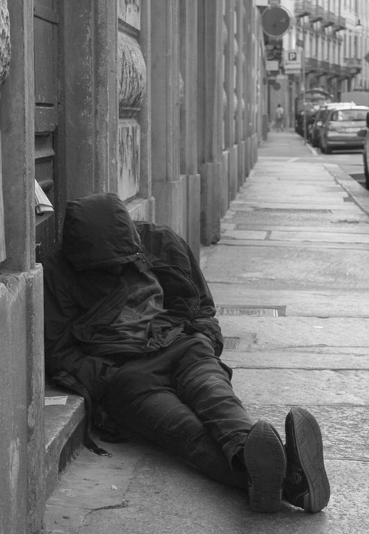“Abbiamo scelto il titolo in inglese perché in italiano non esiste un termine analogo che indichi questa condizione”, spiega la curatrice del progetto, Eleonora Santhià, che sta svolgendo il servizio civile per Opportunanda. L’esposizione, allestita a inizio dicembre nei locali di via Morgari, ha raccolto i momenti quotidiani dei senzatetto a Torino: scatti rubati alla vita in strada, ma anche la rappresentazione dei vari passaggi burocratici che attraversa chi riceve assistenza nei luoghi dedicati, dai dormitori alle mense. “Quest’anno, per la prima volta, abbiamo voluto organizzare la festa finale alla Casa del Quartiere”, racconta Eleonora, “perché cerchiamo il più possibile di creare relazioni con gli altri enti del territorio. Lo scopo del nostro percorso espositivo era di raccontare l’evoluzione di un senza dimora quando incontra i servizi assistenziali”.