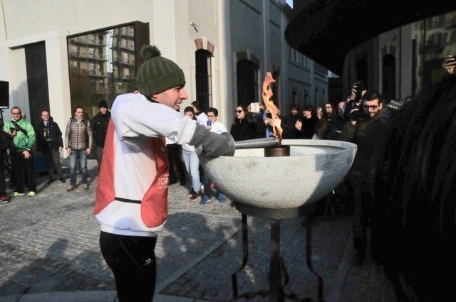 La fiaccola viene portata a turno da dieci ragazzi diversamente abili del Centro Universitario Sportivo di Torino, che in prossimità del braciere la passeranno all’ ultimo tedoforo, atleta Special Olympics.