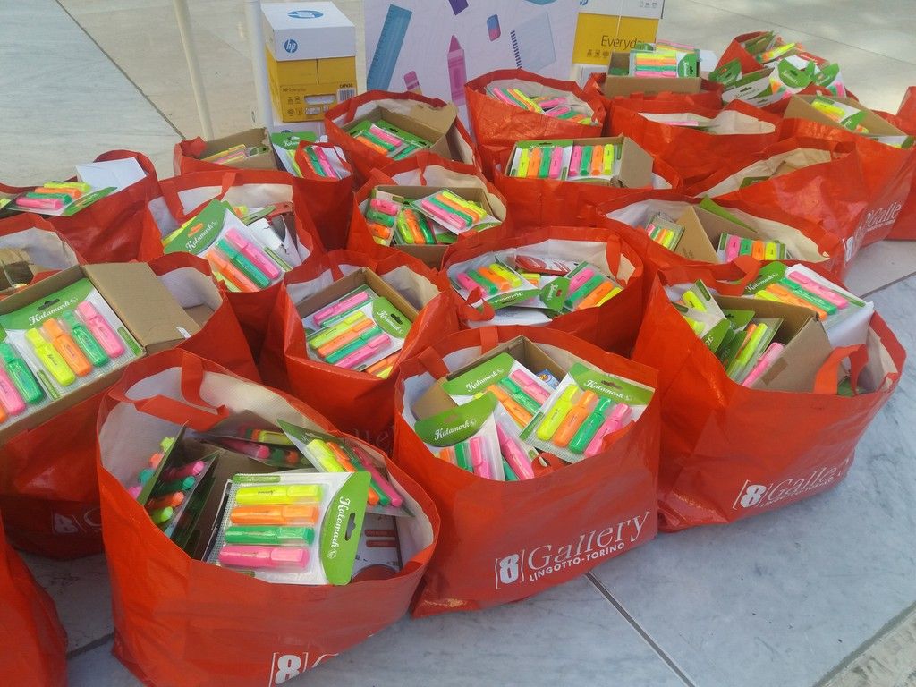 Una ricca fornitura di 12 mila matite e altrettante penne a sfera, mille risme di carta, 10 mila rotoli di scotch e tanto altro ancora: è questo il bottino consegnato oggi al Lingotto, che verrà poi distribuito ai beneficiari tramite furgoni messi direttamente a disposizione da Vol.To.