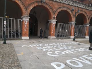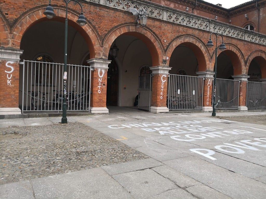 Scritte sulla facciata e all'ingresso della Scuola Holden contro Appendino, e Chiamparino. Questa notte sui piloni di accesso dell'istituto culturale di Borgo Dora qualcuno ha tracciato con lo spray bianco le parole "Suk unito contro Appendino".