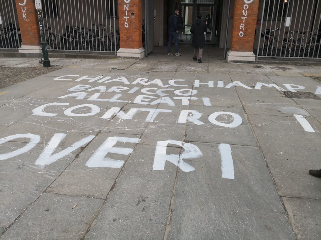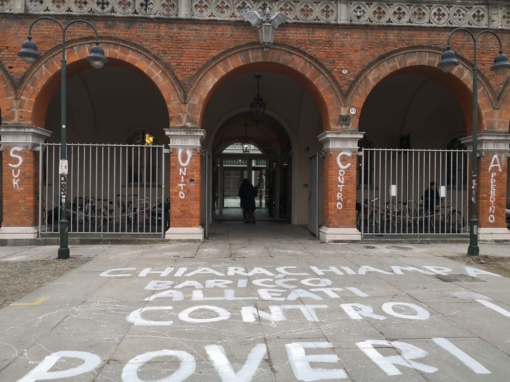 Trasferimento suk in via Carcano, scritte sulla Holden: "Chiara e Chiampa contro i poveri" (FOTO)