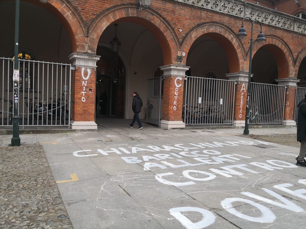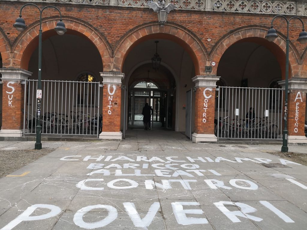 Questa notte sui piloni di accesso dell'istituto culturale di Borgo Dora qualcuno ha tracciato con lo spray bianco un duro attacco alla sindaca e al Governatore del Piemonte. Nel mirino anche Baricco