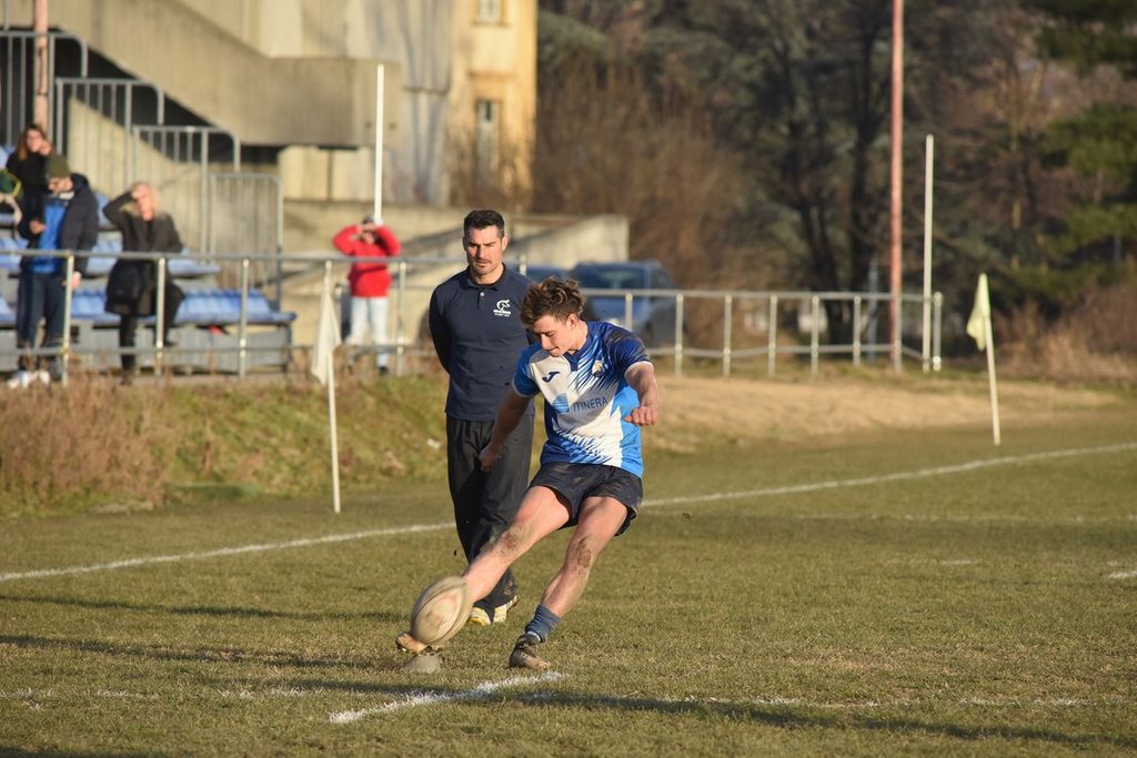 La squadra di coach D’angelo ha raccolto una vittoria importantissima contro l’Accademia, seconda in classifica a più uno dai biancoblu. La prima frazione è stata letteralmente dominata dai padroni di casa che hanno concluso il primo tempo sul 22-0, grazie alle mete di Garziera, Perrone e Ursache due delle quali trasformate da Columba. Il secondo tempo è però tutta un’altra storia con l’Accademia che cerca di riprendere la partita: dopo pochi minuti arriva la meta del 22-5 firmata dal mediano d’apertura Bertaccini, il Cus non si fa cogliere di sorpresa e dopo qualche tentativo arriva la meta trasformata del 29-5 firmata da Nevio Racca rapidissimo nell’uscire dalla maul e cogliere il buco nella difesa dell’Accademia.