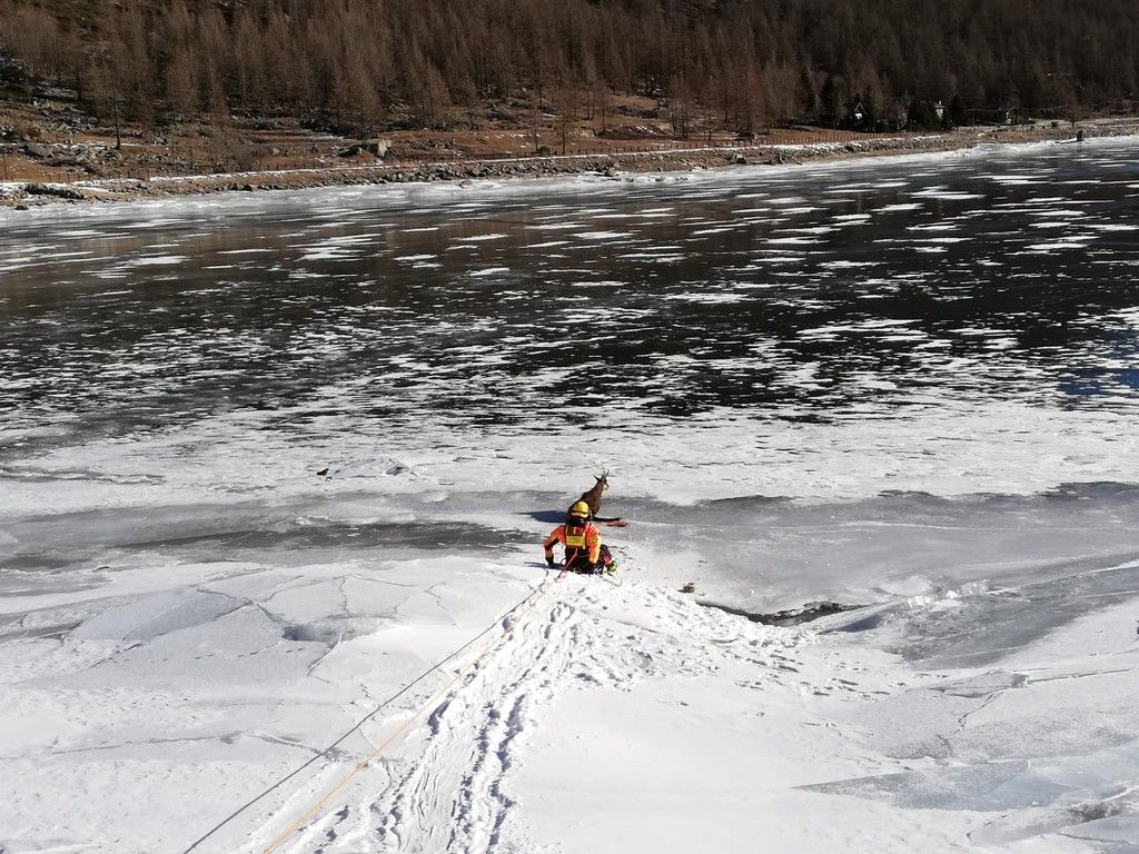 I vigili del fuoco intervengono per salvare un camoscio rimasto ferito a Ceresole Reale (FOTO)