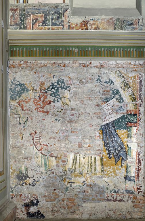 Sulla parete sud è apparsa l'immagine del patriarca Abramo, mentre su quella nord due grandi figure inquadrate da elementi architettonici. Alla sommità delle pareti, nelle fasce decorate, si riconoscono due volti, uno maschile e l'altro femminile.