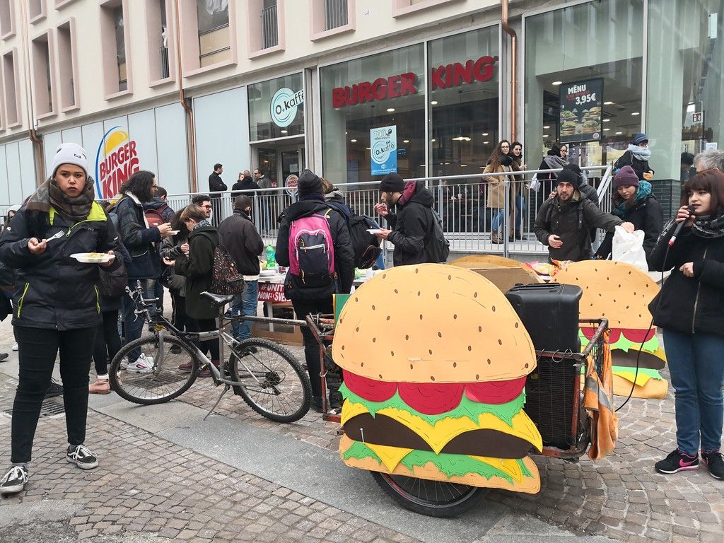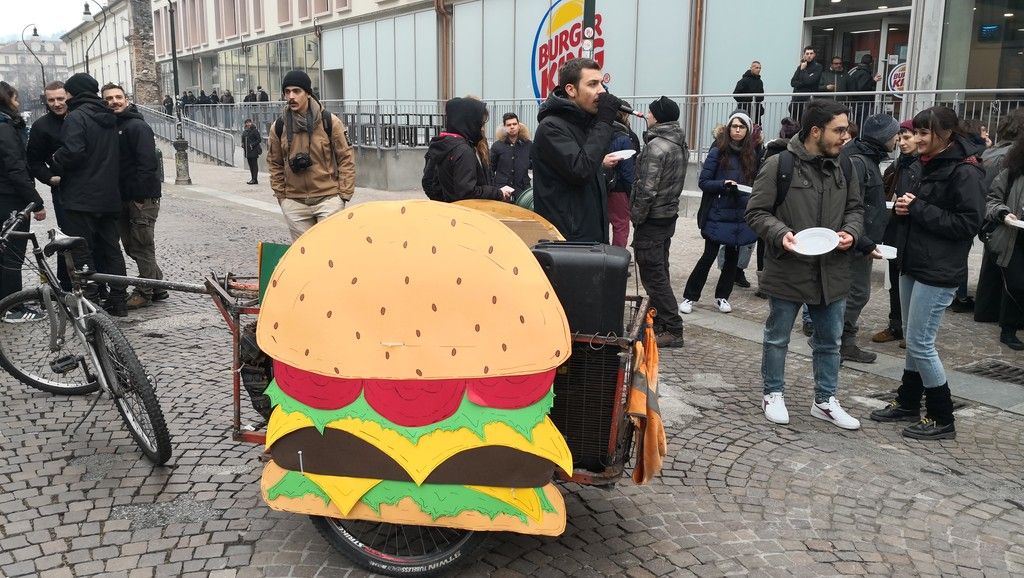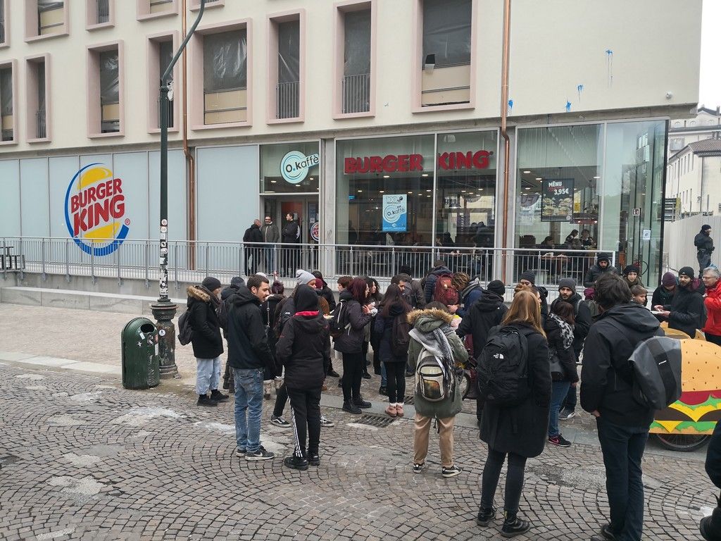 Pranzo di protesta degli studenti davanti al Burger King: "Impediamo ai privati di lucrare su di noi" (VIDEO)