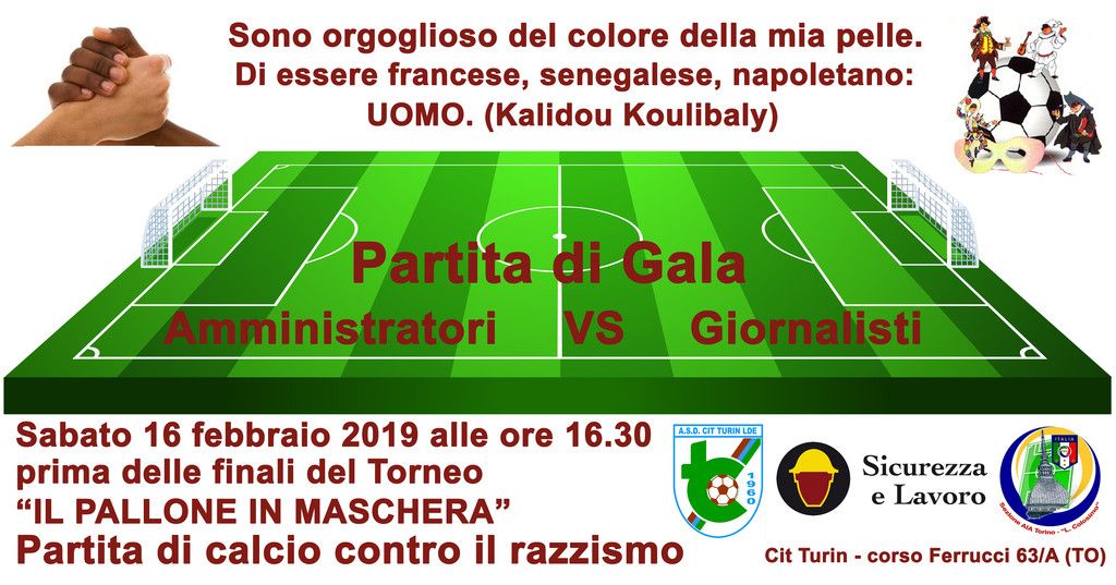 Prendendo spunto dalla campagna contro il razzismo promossa dall’Assessorato ai Diritti e alle Pari opportunità della Città di Torino guidato da Marco Giusta, l’associazione Cit Turin Lde, in collaborazione con Sicurezza e Lavoro e l’Associazione Italiana Arbitri (AIA) – sezione di Torino “Luca Colosimo”, promuove una “partita di gala” contro il razzismo tra Amministratori locali e Giornalisti.