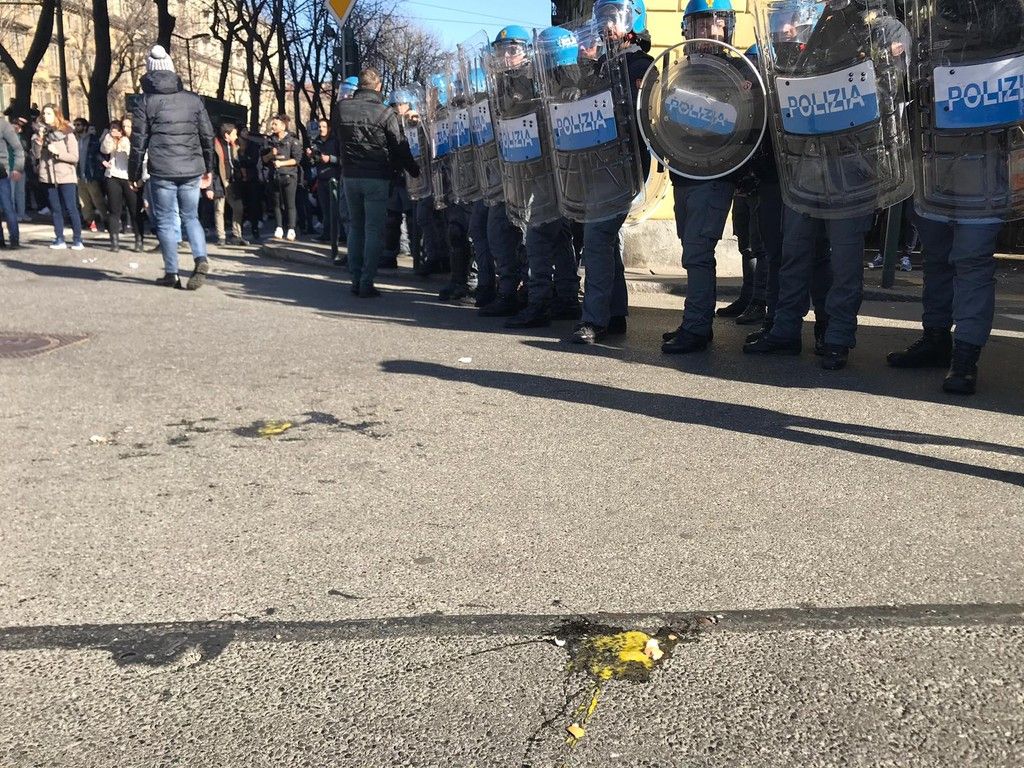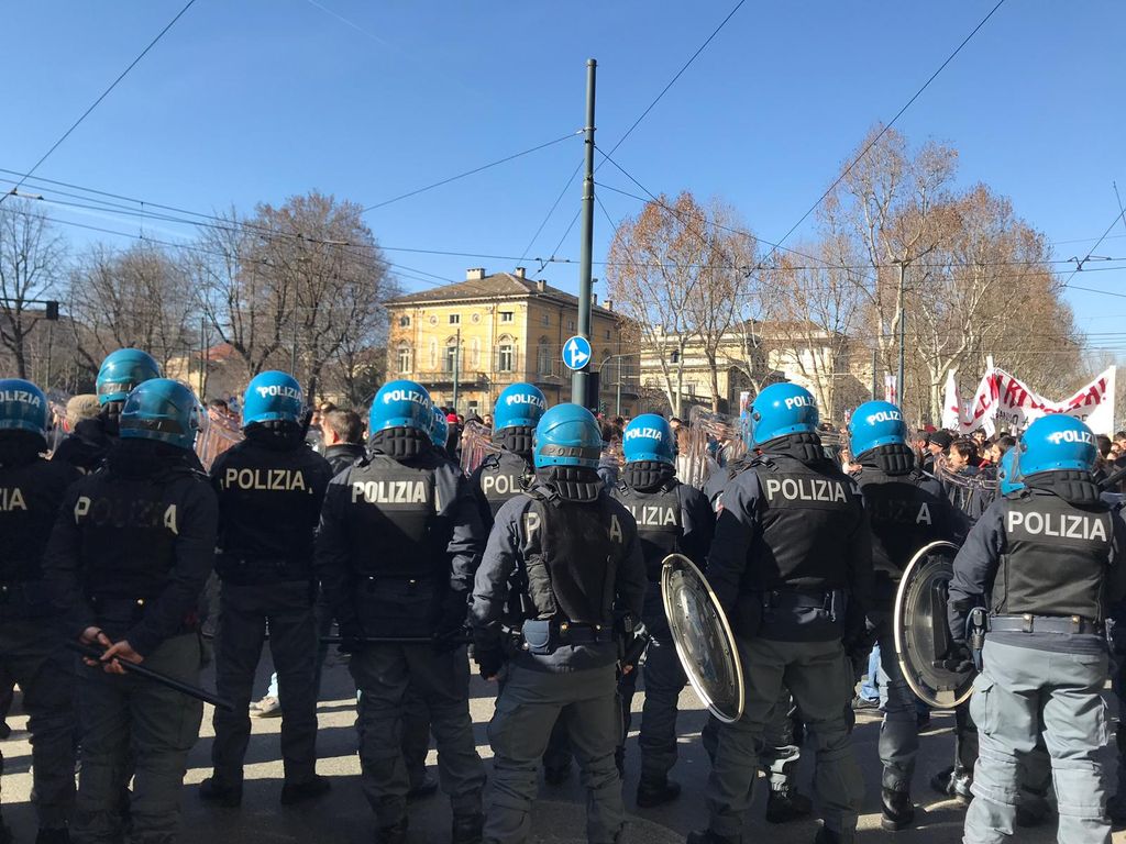 Corteo degli studenti a Torino, uova contro la polizia: gli agenti caricano sotto il Miur. Manifestazione conclusa poco prima delle 13