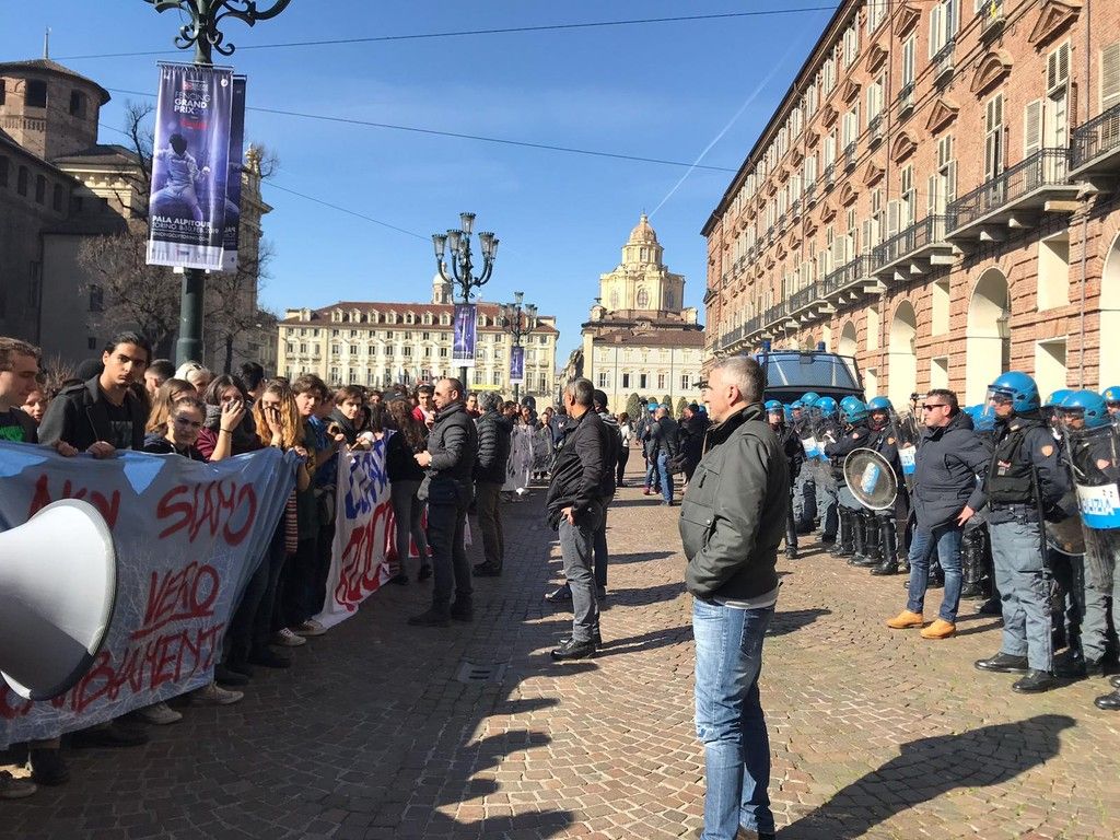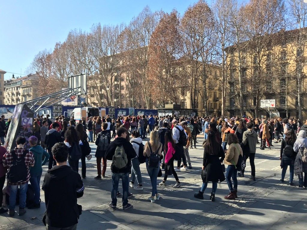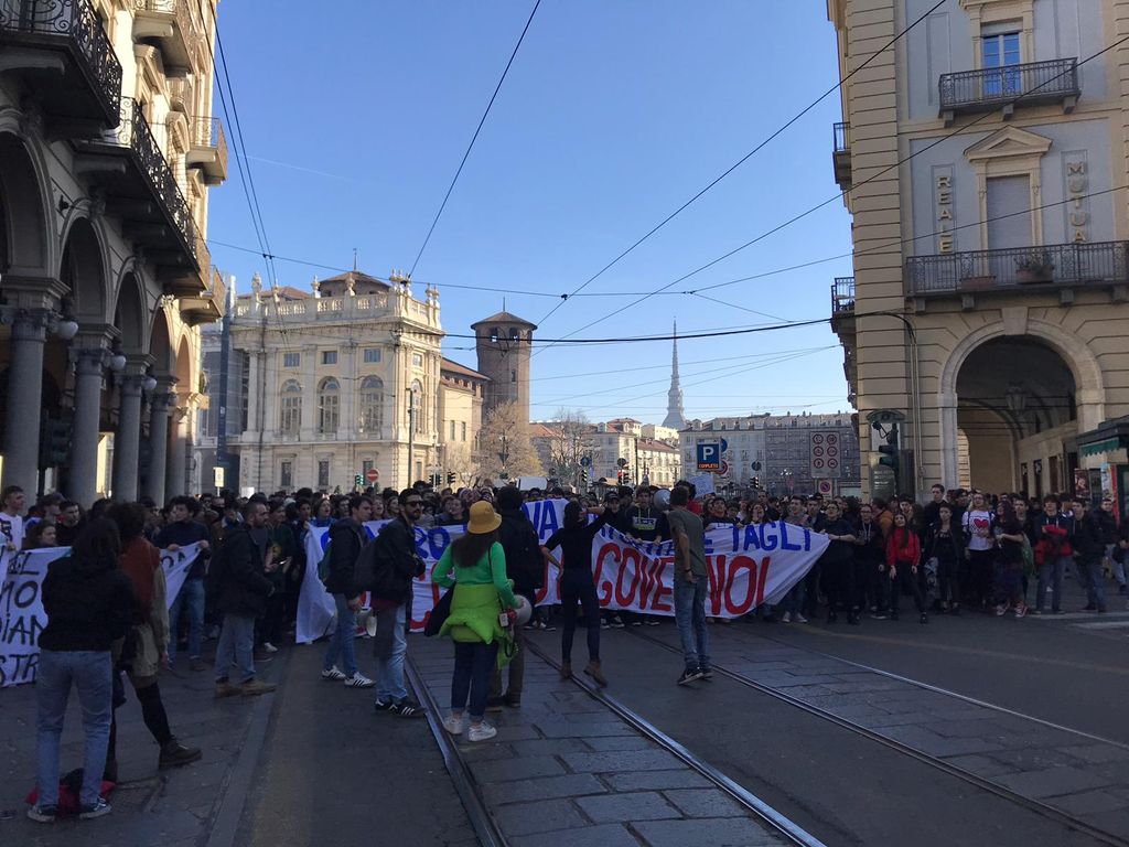 Prosegue il corteo degli studenti, scesi in piazza a Torino e in altre città italiane per protestare contro il Governo.