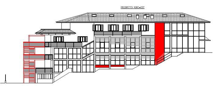 L’intervento sulle facciate è progettato non solo con l’intenzione di riqualificare energeticamente l’edificio, ma anche di migliorarne l’inserimento nel contesto urbanistico di piazza Roma. La parte adibita ad attività culturali si presenterà prevalentemente chiusa da vetrate continue, che in parte saranno dotate di frangisole e in parte avranno vetri solari riflettenti, sia per evidenziarne la funzione sia per curarne l’affaccio principale verso il giardino e la proprietà confinante della villa Querena. Il risultato sarà una facciata a est, prevalentemente neutra, che meglio si accosta all’esistente. È previsto un volume vetrato su due piani che servirà per enfatizzare l’ingresso all’edificio dalla piazza, attualmente non presente. La parete cieca e chiusa dalla vetrata diventerà unavetrina promozionale delle attività svolte nel complesso. La riqualificazione energetica prevede un corretto isolamento dell’involucro e nuovi impianti più efficienti. Per aumentare il comfort degli utenti, saranno previsti accorgimenti tecnici per garantire la buona traspirabilità dei materiali e la regolazione dell’umidità in eccesso grazie al ricambio d’aria naturale.