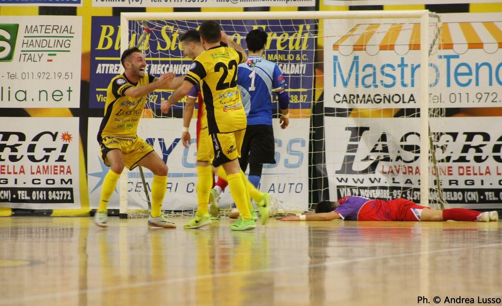 Nell'anticipo della quinta giornata di ritorno, giocatosi ieri sera al palasport di Caramagna Piemonte, il derby piemontese si è colorato di giallo e di nero grazie al 5-1 finale.