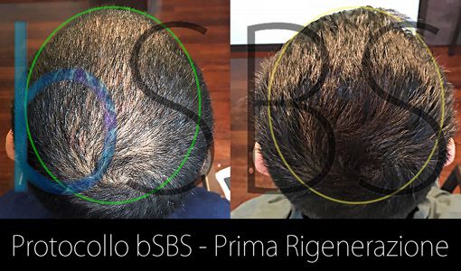 Ma dove il Protocollo bSBS esprime il suo massimo potenziale è nei casi di diradamento, localizzato, marcato, diffuso. Nell’alopecia con diradamento sparso. Nei casi di miniaturizzazione del follicolo e sofferenza follicolare come l’assottigliamento.