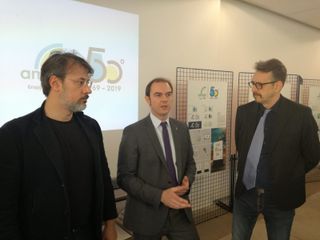 Cinquant'anni da festeggiare, per Amiat, presso gli spazi di A come Ambiente di corso Umbria, in mezzo a una rumorosa e creativa presenza di piccoli artisti di quinta elementare e di prima media impegnati in un laboratorio.