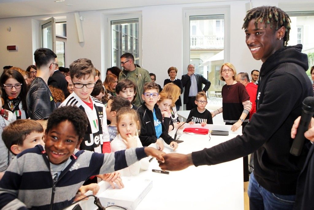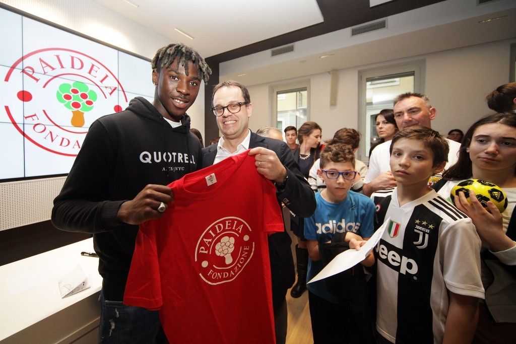 Questo pomeriggio Moise Kean, attaccante della Juventus e della Nazionale italiana, ha incontrato i bambini e le famiglie del Centro Paideia, il nuovo spazio di Fondazione Paideia in via Moncalvo 1 a Torino che offre attività di assistenza per famiglie con bambini con disabilità, attività sportive, corsi e laboratori aperti a tutti.