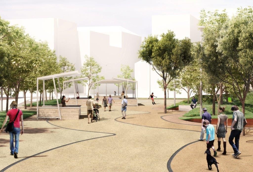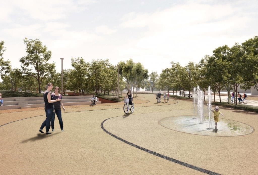 La Commissione Giudicatrice, che aveva indicato come migliore il progetto dello Studio Forno fra tutti gli elaborati pervenuti, aveva così motivato la sua scelta: “Il progetto ha presentato un'idea molto bella e ragionata con una chiara disposizione delle aree tematiche. La soluzione è apparsa molto funzionale, con idee originali e continuità spaziale con il tessuto urbano esistente: la piazza-viale che si apre sulla città, si integra molto bene con la scuola; le connessioni son ben risolte e si riscontra una bella movimentazione del terreno che crea una protezione del parcheggio”. Elemento principale del progetto, la passeggiata-promenade-rambla che attraversa da nord a sud l'area, creando un collegamento armonico fra viale Cavour, il viale storico che porta all'edificio storico di presa del Canale Cavour e viale dei Vigili del Fuoco. Molti degli elementi inseriti saranno multifunzionali e soprattutto, sono stati ottimizzati gli elementi di sicurezza per l'ingresso della scuola materna “Bambi”.
