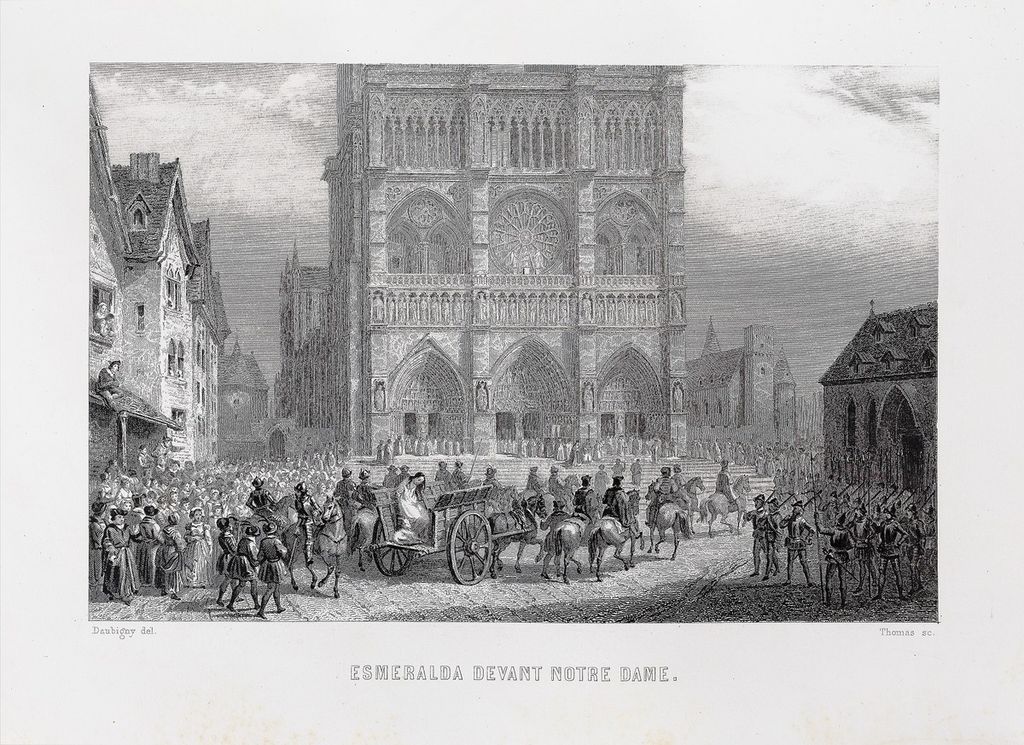 La rivalutazione del ruolo-simbolo di Notre-Dame deve molto anche al romanzo del vate Hugo pubblicato nel 1831, frutto della rielaborazione di antichi racconti medievali, che vede protagonisti il gobbo campanaro Quasimodo e la bella zingara Esmeralda.
