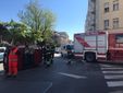 Via Medici, frena all'improvviso e sterza per evitare un furgone: auto si ribalta in strada