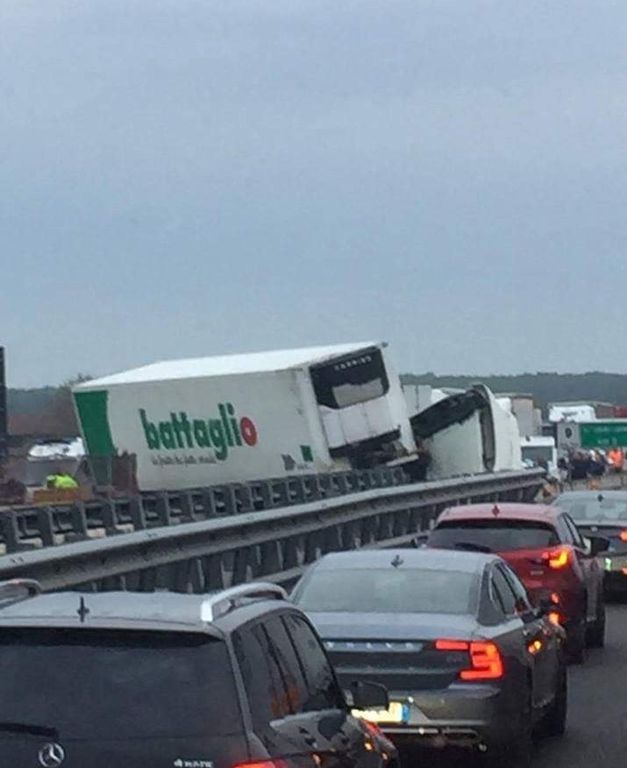 Tir sbanda e invade l'altra corsia, chiusa la Tangenziale sud: traffico nel caos