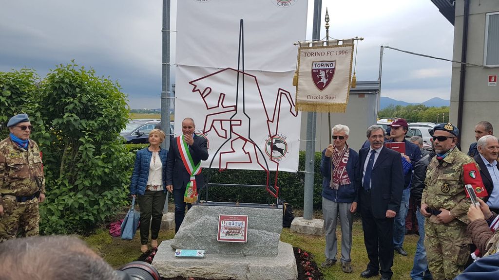 Il padre spirituale del Torino, Don Riccardo Robella, ha benedetto un monumento, progettato da Isabella Bioletti e Dino Favaro, in ricordo di giocatori, dirigenti, tecnici, giornalisti e membri dell’equipaggio che furono vittime della tragedia del 4 maggio 1949.