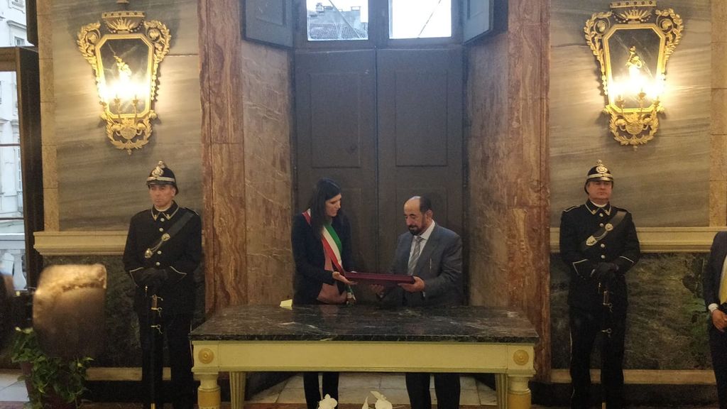 Prima di salutarlo, la sindaca ha donato allo sceicco una raccolta di stampe di immagini di Torino ricavate dalle lastre originali del 1853, appartenenti all'Archivio Storico della Città e realizzate da Friedrich Salathé su disegni di Carlo Bossoli.