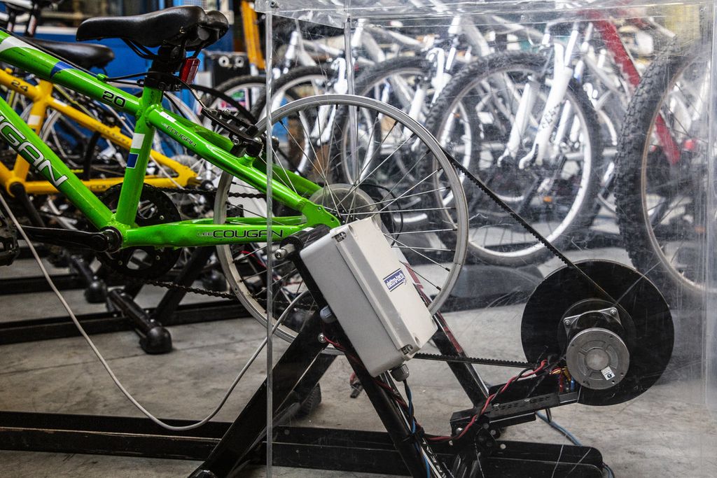 Il sistema di co-generazione è composto da quindici biciclette che massimizzano il rendimento dello sforzo umano, più un generatore collegato a una batteria di accumulo che immagazzina l’energia prodotta.