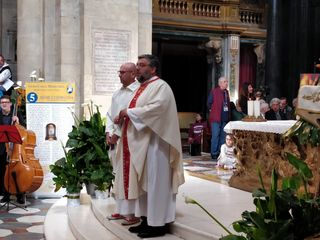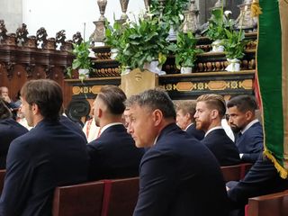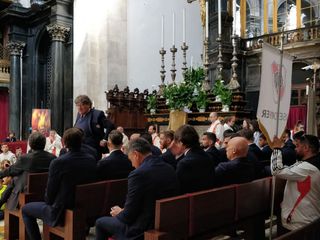 Don Robella ha rotto un vaso sull'altare, distribuendo i cocci al presidente Urbano Cairo, al capitano Belotti, ai rappresentanti della Fiorentina, squadra gemellata con il Torino, e a una bambina seduta per terra dinanzi ai calciatori "perchè quei cocci - ha detto il parroco - devono vivere anche in futuro".