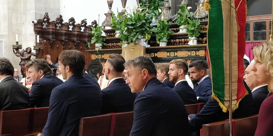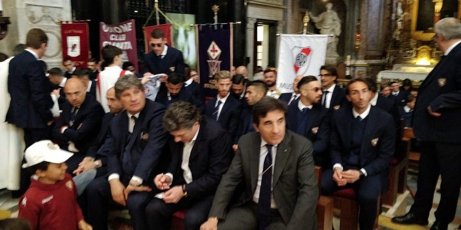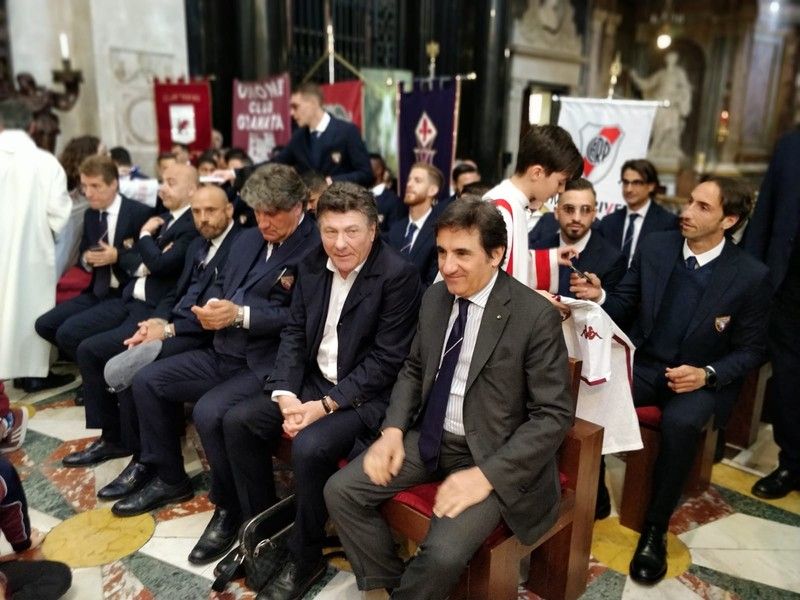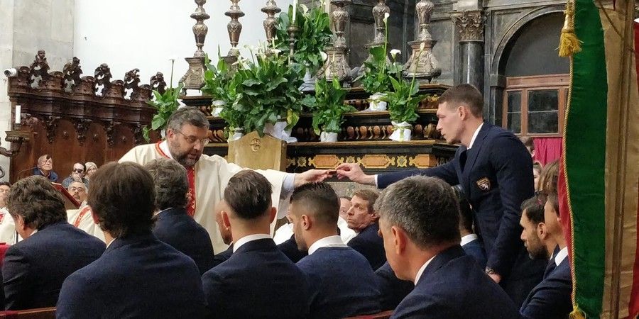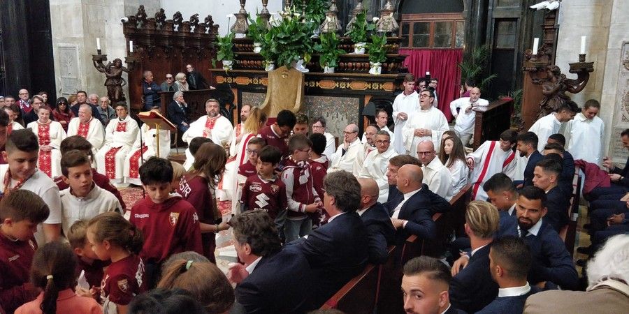 Don Robella ha rotto un vaso sull'altare, distribuendo i cocci al presidente Urbano Cairo, al capitano Belotti, ai rappresentanti della Fiorentina, squadra gemellata con il Torino, e a una bambina seduta per terra dinanzi ai calciatori "perchè quei cocci - ha detto il parroco - devono vivere anche in futuro".