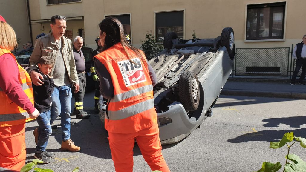 Venaria, incidente rocambolesco in corso Matteotti: un'auto si ribalta [FOTO]
