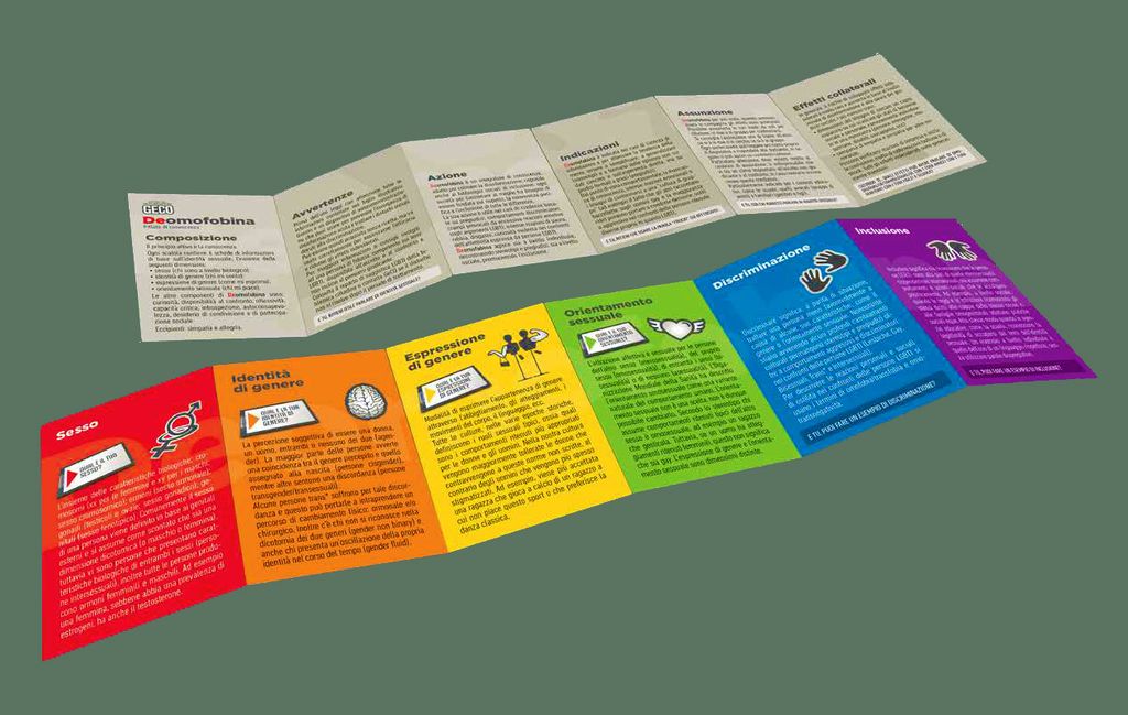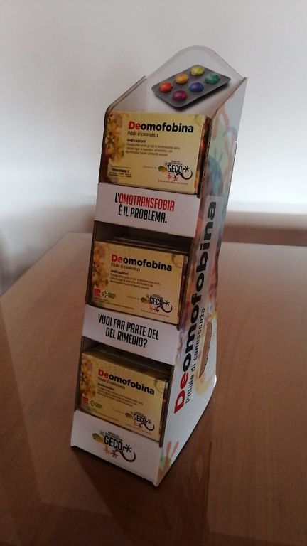 Le indicazioni riportate sulla confezione recitano: "Principio attivo contro gli stati di disinformazione acuta, i disturbi legati al pregiudizio, all'omofobia e alle discriminazioni basate sull'identità sessuale". All'interno, il classico bugiardino con testi scritti da una psicoterapeuta, Margherita Graglia, che uniscono il rigore scientifico alla leggerezza della forma comunicativa.