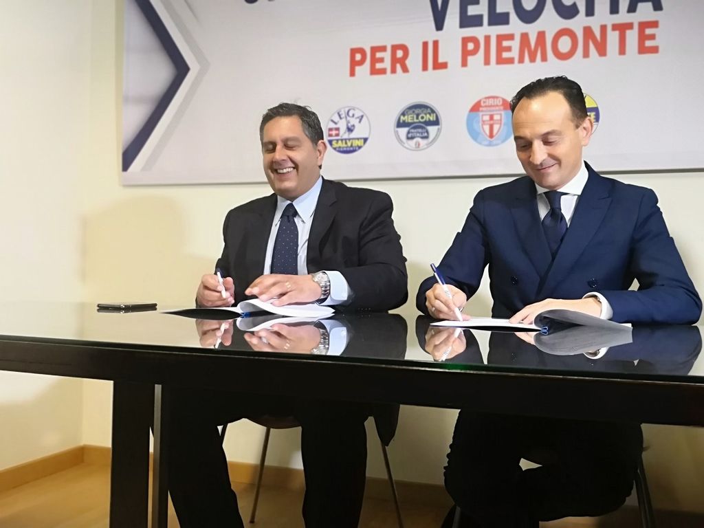 Patto tra Piemonte e Liguria per la crescita di lavoro, sicurezza, infrastrutture, turismo, salute e autonomia. Questa mattina il Presidente della Liguria Giovanni Toti e il candidato alla presidenza del Piemonte per il centrodestra Alberto Cirio hanno sottoscritto un documento politico "perché le due regioni possano diventare il motore economico del paese ed un esempio di buone pratiche di governo". Tra i punti dell'accordo la "gestione integrata delle aree montane e le vallate di collegamento, contigue tra le due regioni".