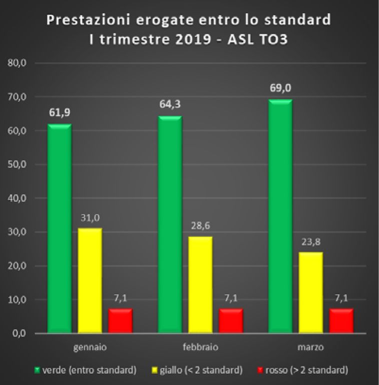 Grazie quindi alla sinergia di tutte queste azioni, i dati relativi ai Tempi di Attesa dell’Asl To3 del primo trimestre 2019 non solo confermano e consolidano il trend positivo già registrato negli ultimi mesi del 2018, ma evidenziano un progressivo aumento del numero delle prestazioni erogate entro gli standard, che a marzo 2019 risultano essere il 69% e nella proiezione di aprile oltre l’85%.