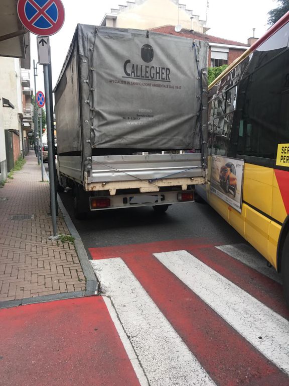 Il bus della linea 39, impossibilitato a svoltare su via Juvarra, rimanendo incastrato ha bloccato il traffico. Multato il conducente del furgone