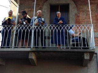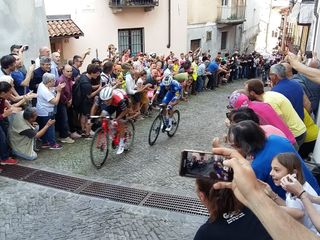 A Pinerolo la salita di via principi di Acaja ha visto riempirisi il bordo strada e anche i balconi delle abitazioni. C'è stato chi, noncurante della fatica, ha saputo spingere la bicicletta su per la salita che porta alla Scala santa. Qualche appassionato ha preso posto già dall'ora di pranzo per vedere e fotografare i corridori in entrambi i passaggi sulla salita ripida del centro storico medievale di Pinerolo.