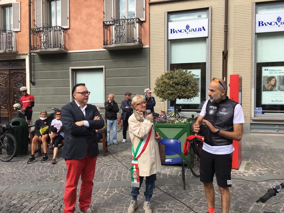 Tanti i ciclisti, professionisti e non solo, che si sono radunati davanti alla collegiata di Santa Maria Assunta ed agli amministratori comunali per dare inizio ad una pedalata che terminerà il 3 giugno a Venezia. Le tappe sono davvero tante e tutte offriranno la possibilità di ammirare la bellezza del fiume Po e dei torrenti. Si passerà per le risaie del vercellese e si arriverà nel monferrato. Si toccherà Piacenza, Pavia ed anche Reggio Emilia, Chioggia per tagliare il traguardo al Lido di Venezia.