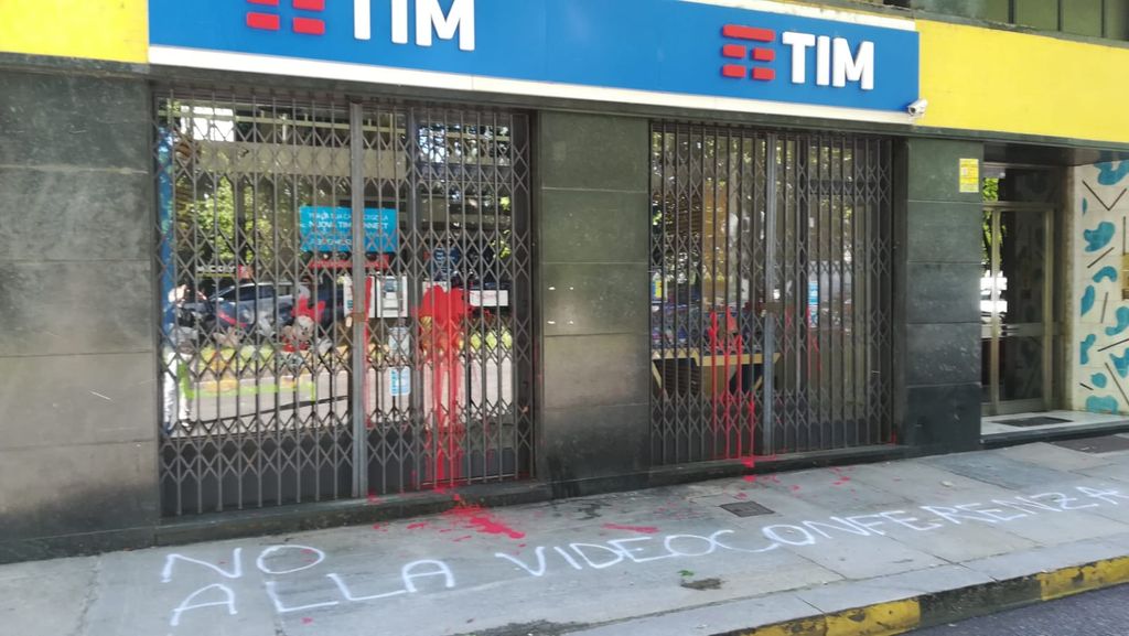 Vernice rossa e scritte contro il negozio Tim di corso Casale