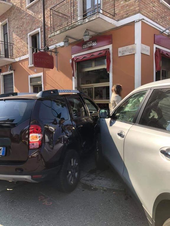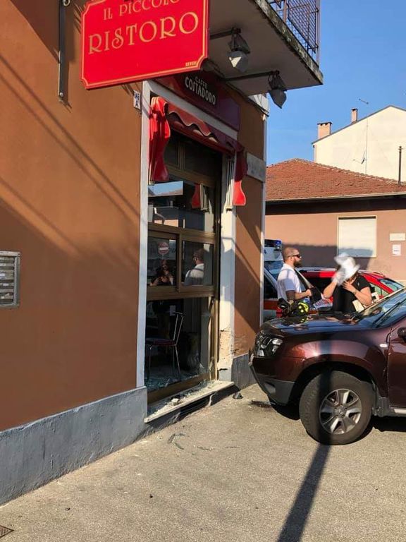 Tragedia sfiorata a Parella, auto si scontrano e sfondano la vetrina di un bar [FOTO]