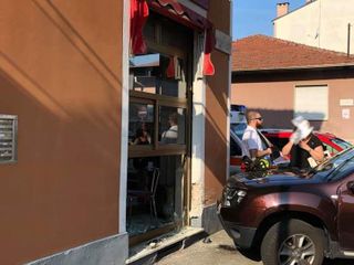 Tragedia sfiorata a Parella, auto si scontrano e sfondano la vetrina di un bar [FOTO]