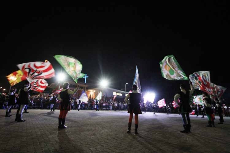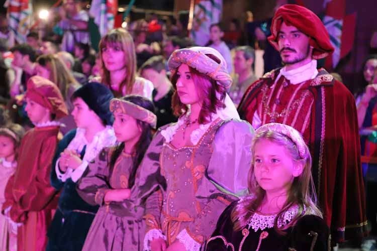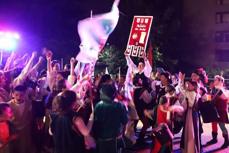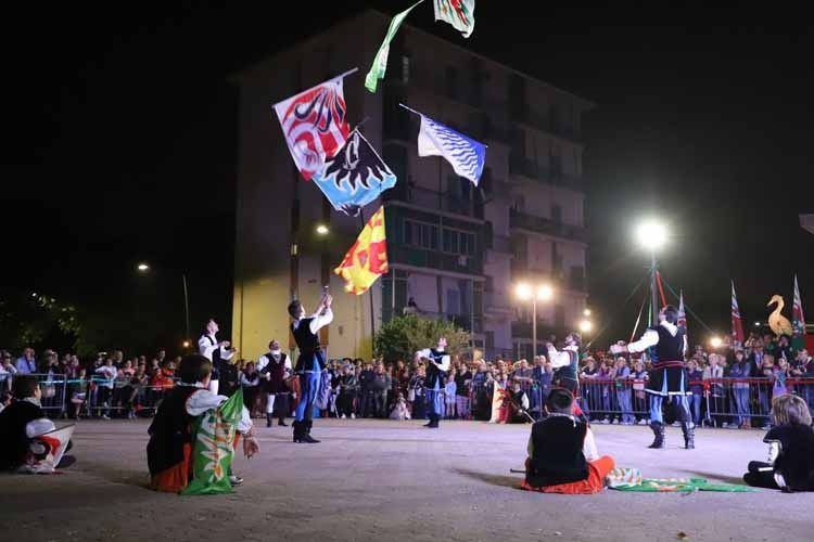 Dopo le acrobazie e le prodezze degli sbandieratori del venerdì sera, accompagnati dai tamburi e dalle rievocazioni storiche, ieri, sono stati i più piccoli a sfidarsi in una corsa a staffetta per difendere i colori dei 7 borghi della città, mentre in serata è stata la volta della cena, che ha raccolto oltre 900 prenotazioni e una lunga lista d'attesa. Il tutto, immerso nelle atmosfere del passato grazie anche all'Animazione dei luoghi storici a cura dei Viandanti della Cojta' Gruliascheisa.