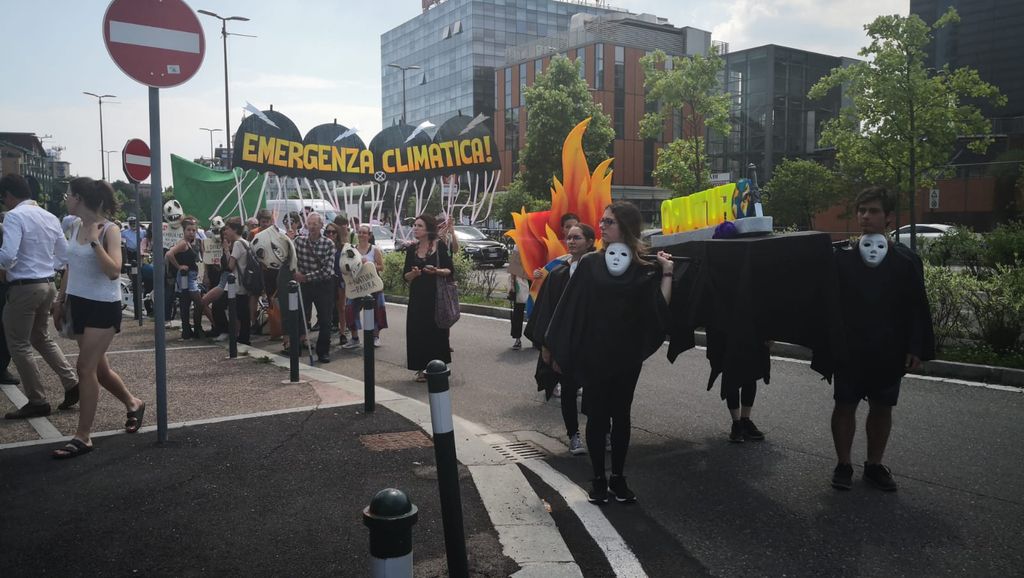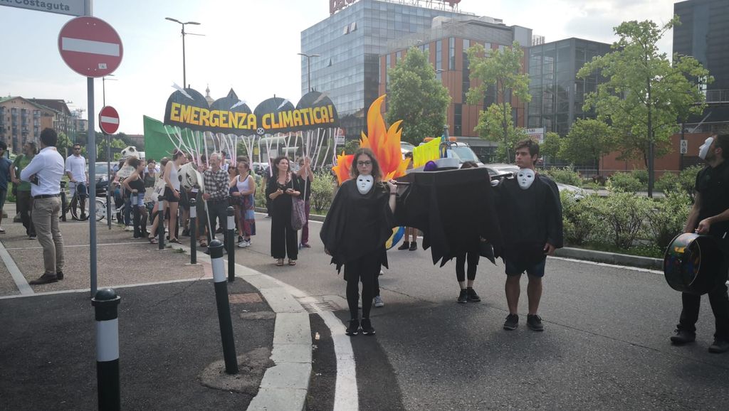 Una cerimonia funebre per il "futuro" presso l'Environment Park, dove è in corso la due giorni per combattere l'inquinamento atmosferico con la presenza del Governo. A celebrare l'ultimo addio per i giorni che verranno i ragazzi di Fridays For Future Torino, che hanno sfilato in via Livorno con una finta bara coperta da un velo nero, sormontata dalla scritta futuro. Ad accompagnare il corteo il suono di un tamburo e i ragazzi con decine di cartelli con frasi "Il pianeta brucia, ribelliamoci per salvarlo" e "Make the world Greta again".