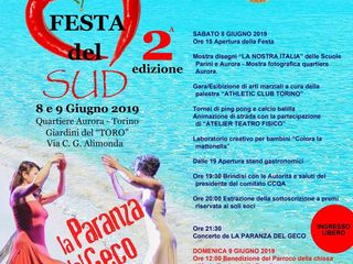 Il Comitato Cittadini Quadrilatero Aurora si impegna quotidianamente per combattere il degrado e l’insicurezza sensibilizzando le istituzioni e promuovendo azioni per la riqualificazione del territorio. Fa parte di questo percorso la seconda edizione della FESTA DEL SUD, in programma sabato 8 e domenica 9 giugno presso i giardini Alimonda.