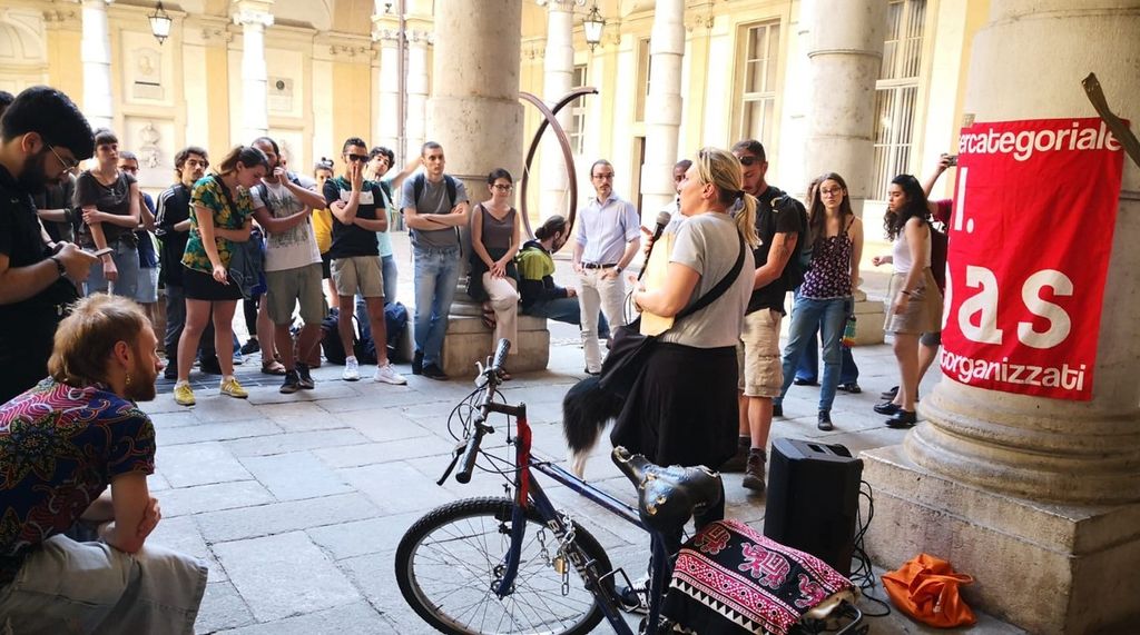 Bar del Campus, striscione e presidio al Rettorato: "Nessun licenziamento a causa di Unito, vogliamo il reintegro degli attuali lavoratori"