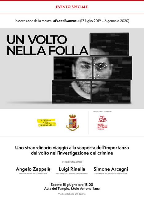 Un evento speciale si presenta in occasione della mostra #faccemozioni. Si tratta di "Un volto nella folla", realizzato dal Festival della Criminologia e dalla Polizia di Stato in collaborazione con il Museo Nazionale del Cinema, dal 17 luglio 2019 al 6 gennaio 2020.