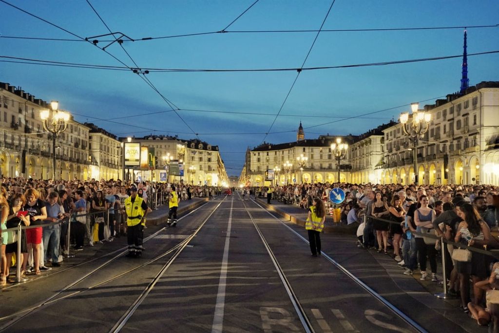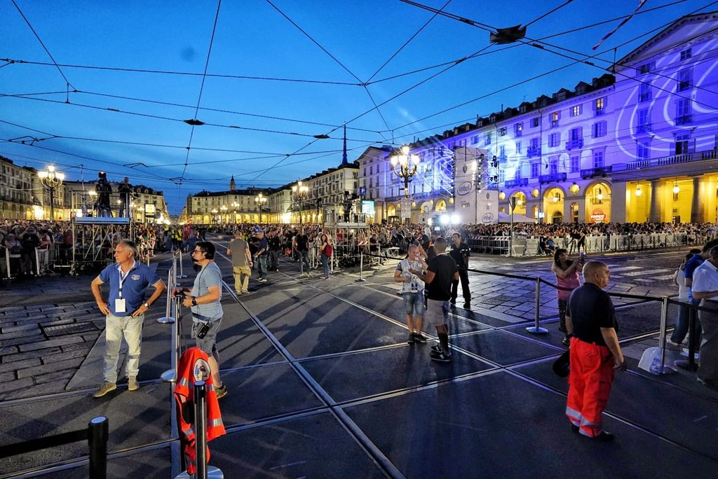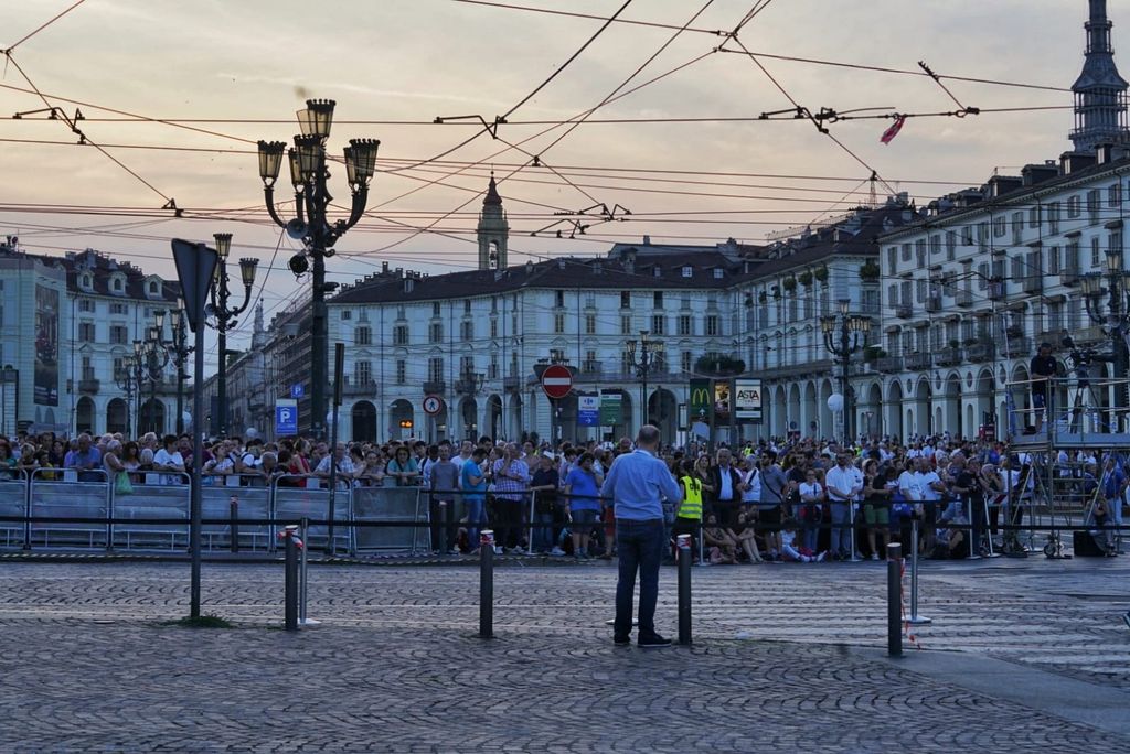 Alle 18 sono stati aperti i 21 varchi per il pubblico. La capienza massima nella piazza è di 38 mila persone, mentre altre 12 mila sono ospitate in via Po