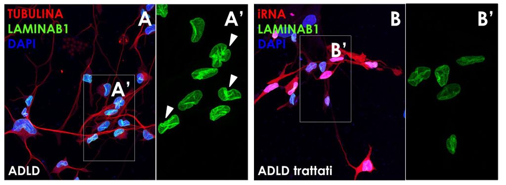 La ricerca - condotta dalla Dott.ssa Elisa Giorgio (Dipartimento di Scienze Mediche dell’Università di Torino) anche grazie al finanziamento di Fondazione Umberto Veronesi - ha dimostrato che l’interferenza a RNA può essere sfruttata per spegnere selettivamente una delle tre copie del gene LMNB1, quella in eccesso, e riportare i livelli di lamina B1 alla normalità, evitando in questo modo l’accumulo della proteina e la malattia.