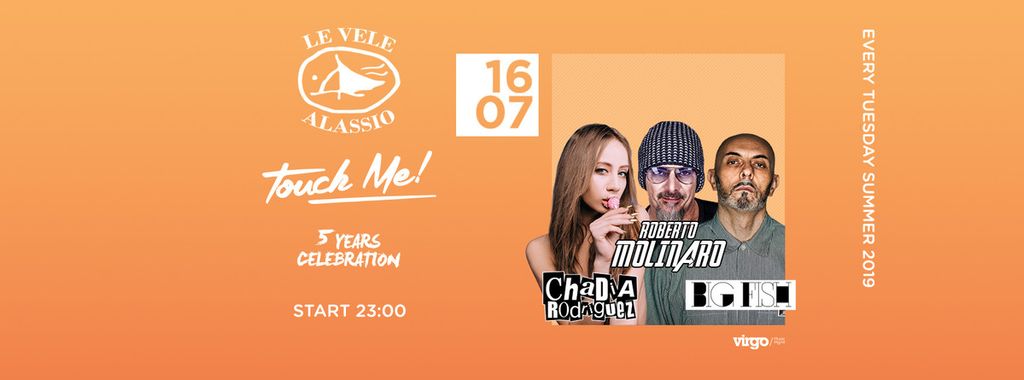 Le Vele Alassio presents Touch Me! - Special Guests: Chadia Rodriguez + Big Fish + Roberto Molinaro / Resident DJ: Francis Key / Voice: Mad Fiftyone