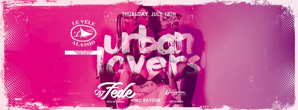 Le Vele Alassio presenta "Urban Lovers": party dedicato alle sonorità Hip Hop / Trap! Special guests DJ Fede from Pick-Up Torino + Mc Rayden + Gino Guarnieri from Life Torino! L'ingresso è in omaggio per le donne entro le ore 00:30 e ridotto tutta la notte per i possessori della Resident Card. Vi aspettiamo!