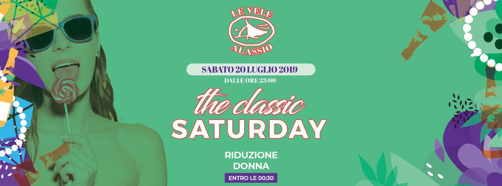 Le Vele Alassio - The Classic Saturday Night, ed il titolo dice tutto: il leggendario sabato notte della Riviera ligure di Ponente firmato Le Vele Alassio! L'ingresso è in riduzione per le donne entro le ore 00:30 e ridotto tutta la notte per i possessori della Resident Card. Arrivate presto, fate festa insieme a noi e aspettiamo l'alba insieme!