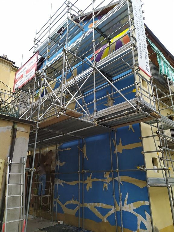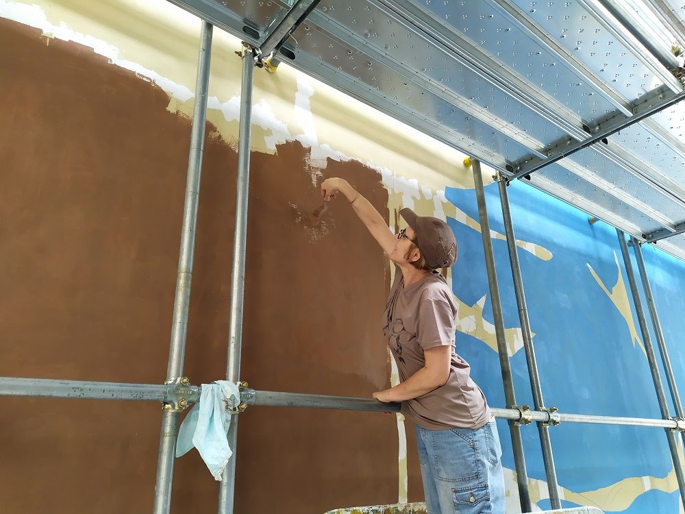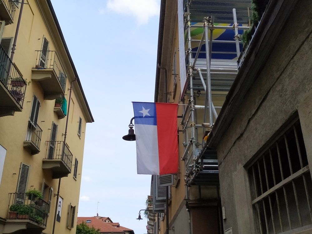 L'opera, che verrà completata lunedì, fa anche parte di un esperimento collettivo: tutti, infatti, possono partecipare e dipingerne una parte; l'ingresso del cortile è segnalato, non a caso, da una bandiera cilena.