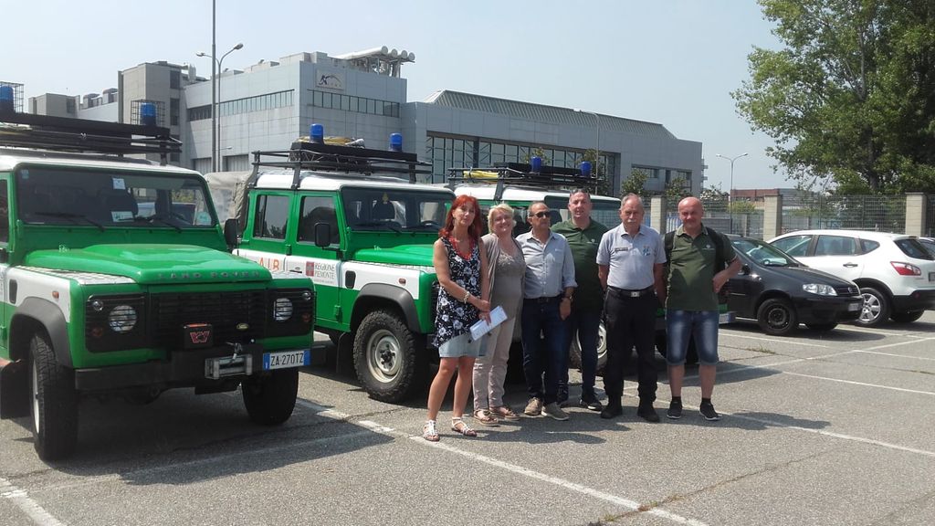I funzionari della Regione Sardegna hanno preso in consegna tre fuoristrada Land Rover Defender attrezzati con il modulo antincendio di proprietà della Regione Piemonte per portarli a Genova, dove si imbarcano questa sera con destinazione Olbia.